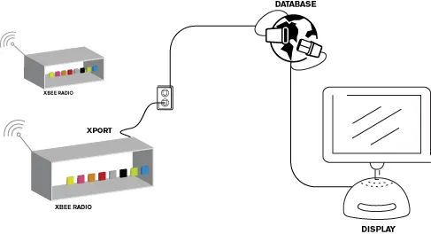- Third, this data is transmitted to the central xbee which then sends this data over tcp/ip through the help of xport to some database. This database gradually fills with temporal stats of our generic mood on the floor.