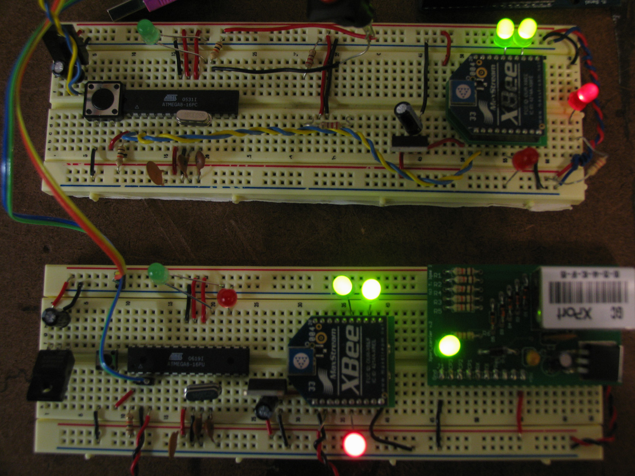 So before going ahead and building my box with xbee, I built two arduinos on a breadboard and put two xbees on them to see where I am going from there.